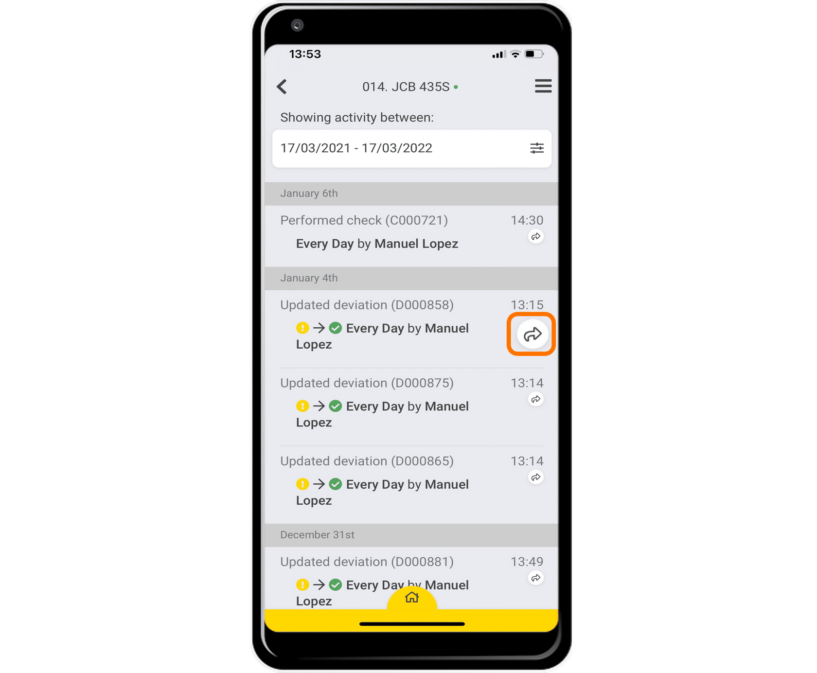 Let’s imagine that you want to see activities that were previously performed on a particular unit/round. You can do this with the CheckProof app!