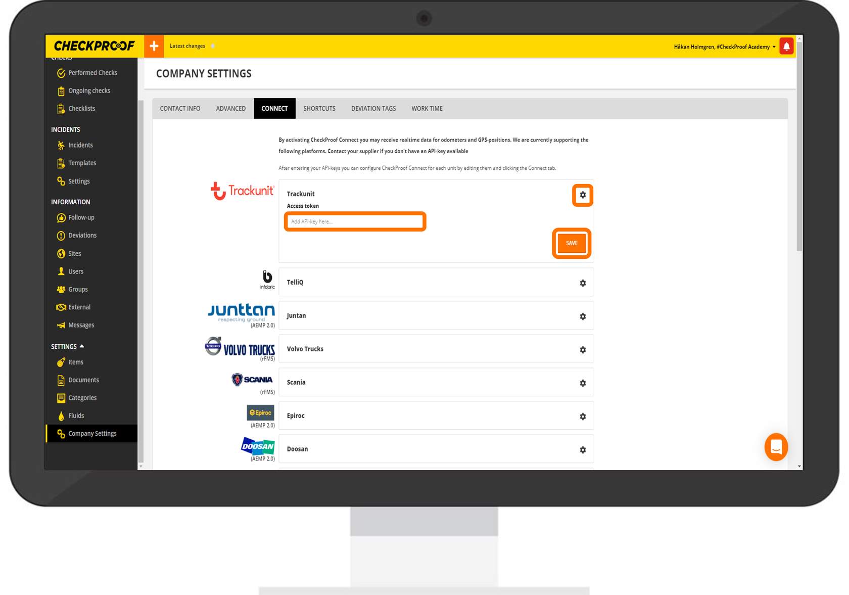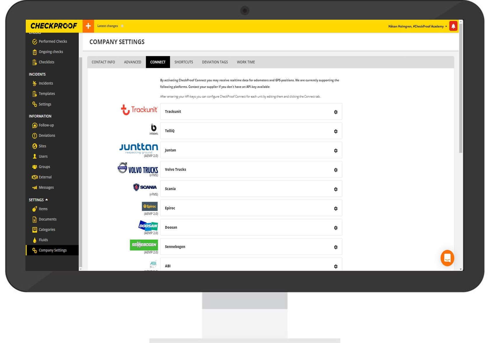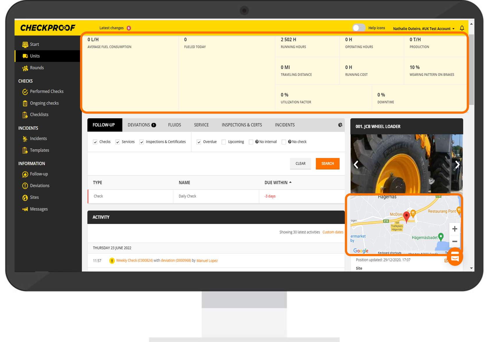 By activating CheckProof Connect you will receive real-time data for odometers and GPS positions of your equipment.