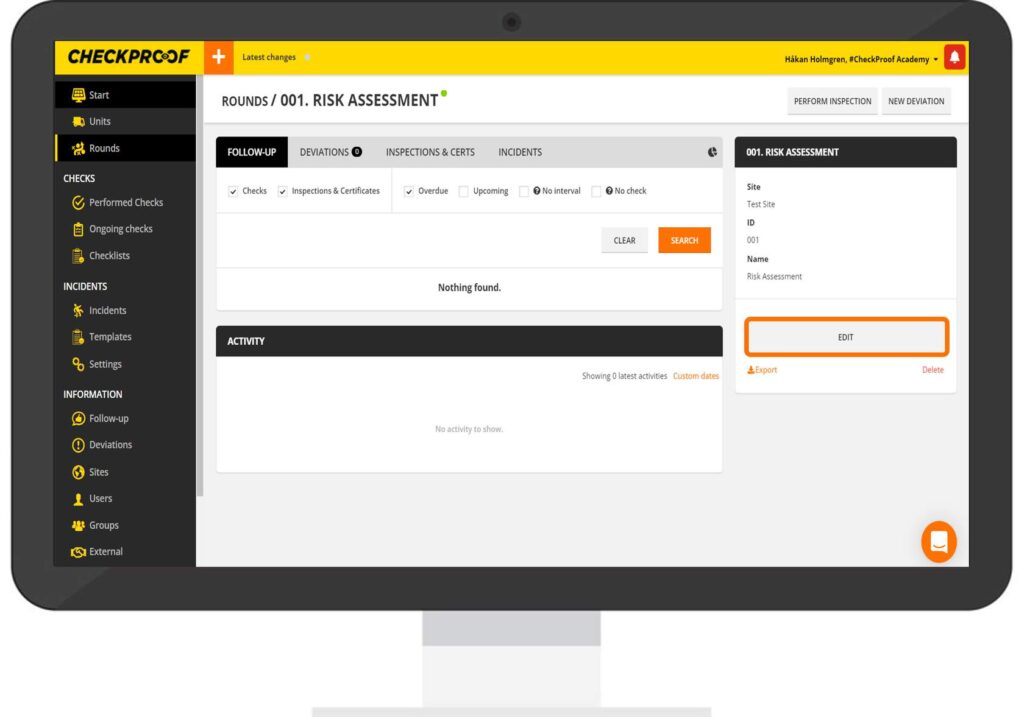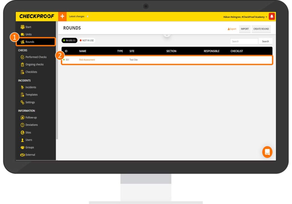 From the CheckProof homepage, click on “Rounds” in the side panel menu to view a list of rounds. Now, choose the round that you want to connect a checklist to.