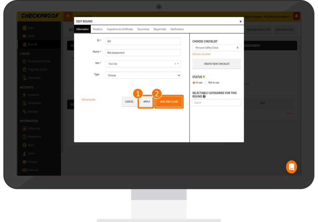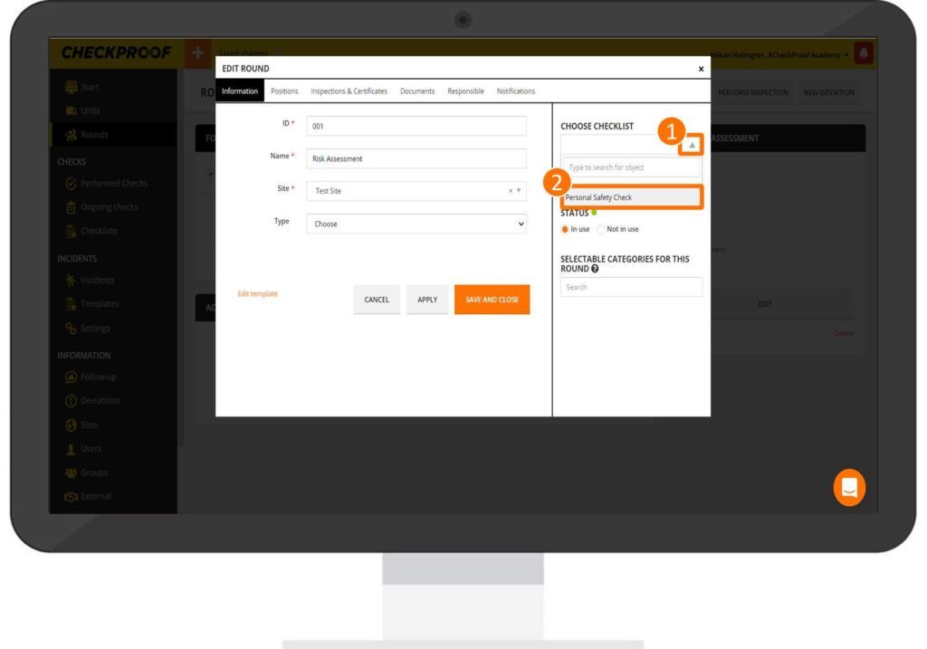Now that you have selected a checklist, click on “Apply” and then on “Save and Close”.
