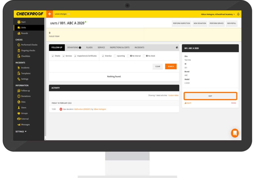 Under the unit information you will find the option to edit the unit. Click on “Edit” to do so