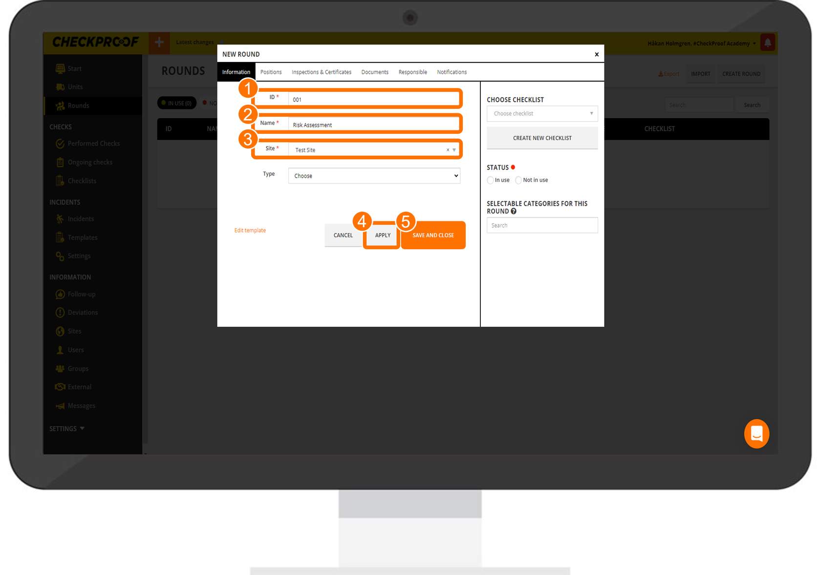 HSEQ do not necessarily need to be connected to a unit. They can be fire HSEQ, safety HSEQ, risk assessments, etc. Let’s learn how to create a HSEQ in the CheckProof app.