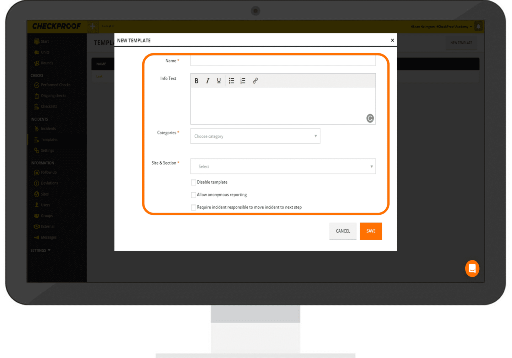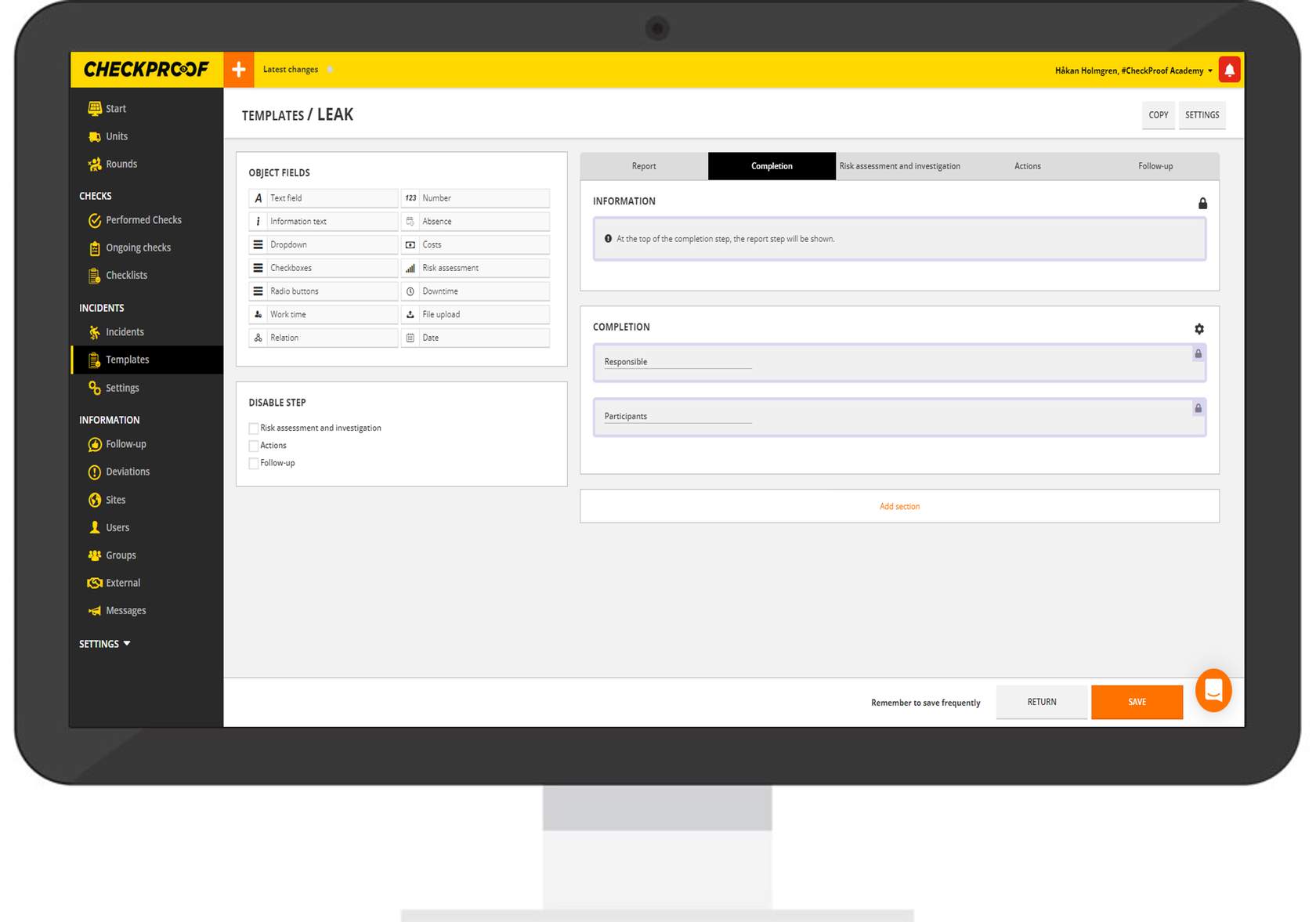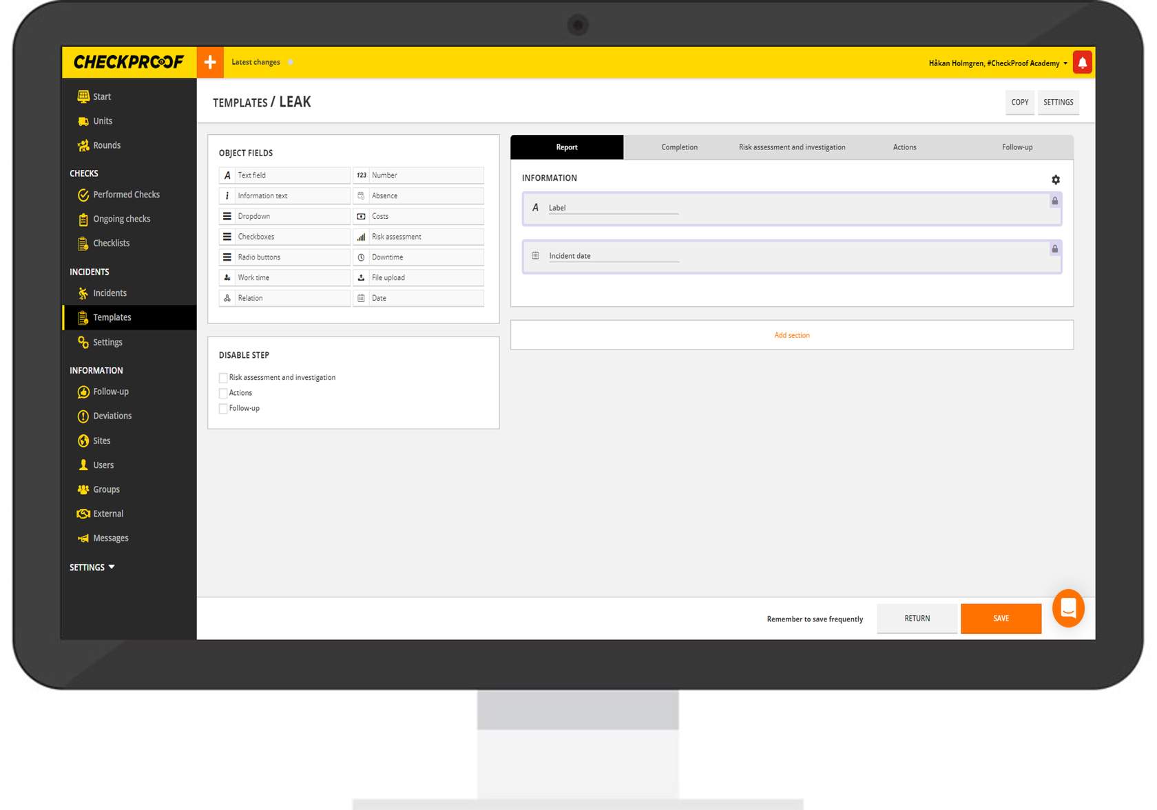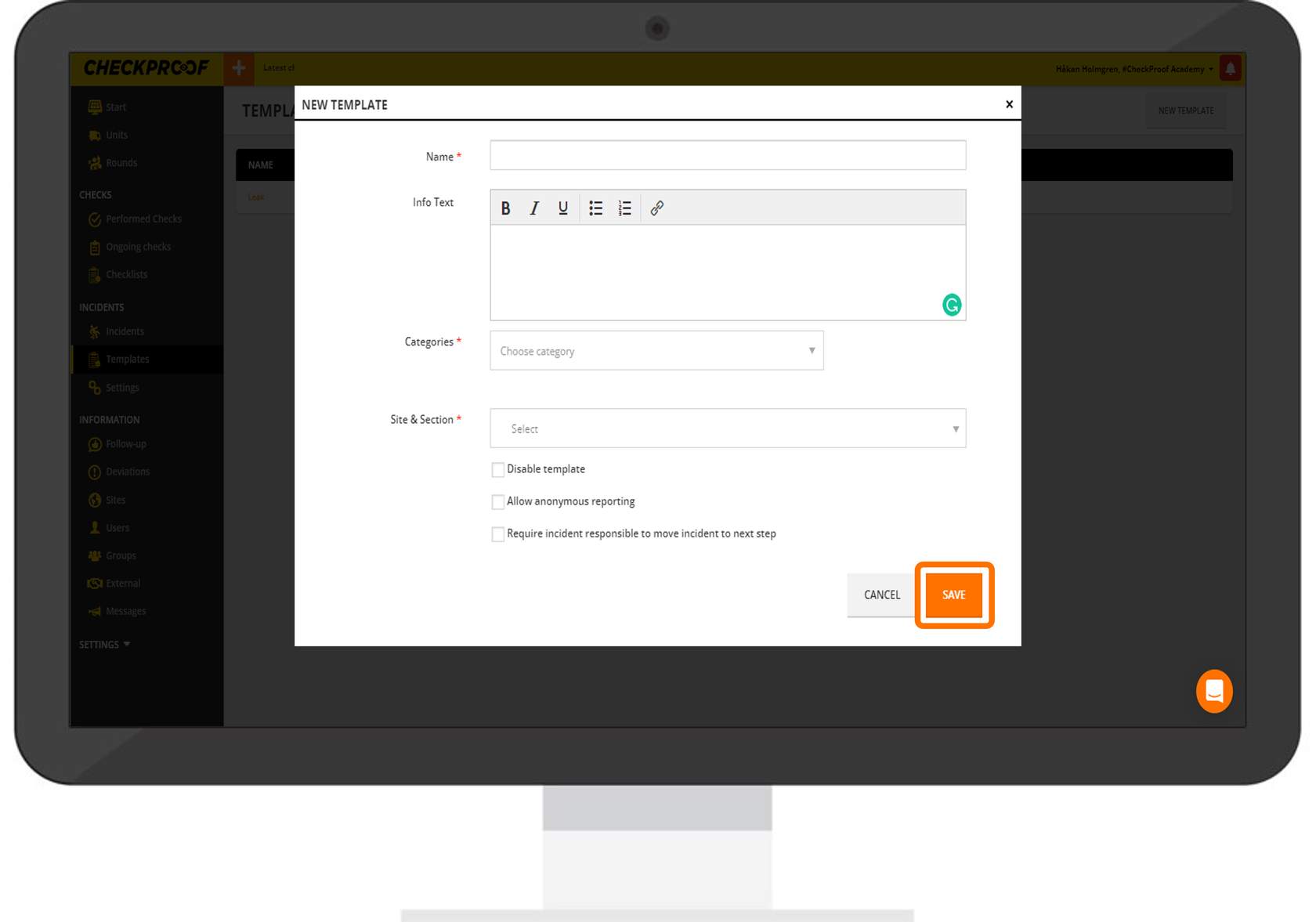 Once you have completed the form, click the “Save” button to save this template. Users will now be able to use this template when reporting an incident.