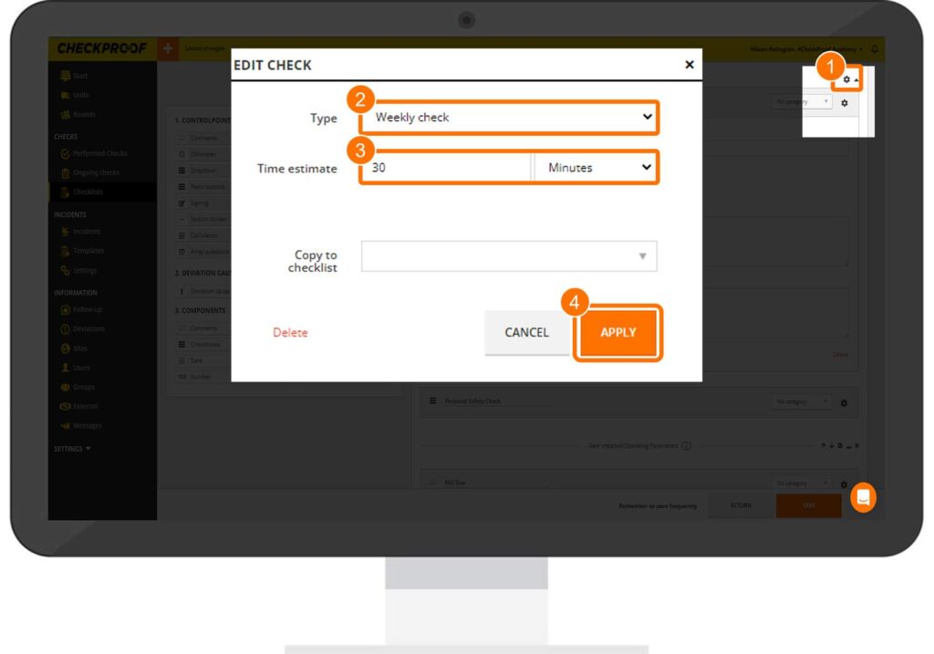 A checklist can consist of many checks. It is possible to update a checklist from the settings menu, where you can change the name of the checklist and assign permissions.