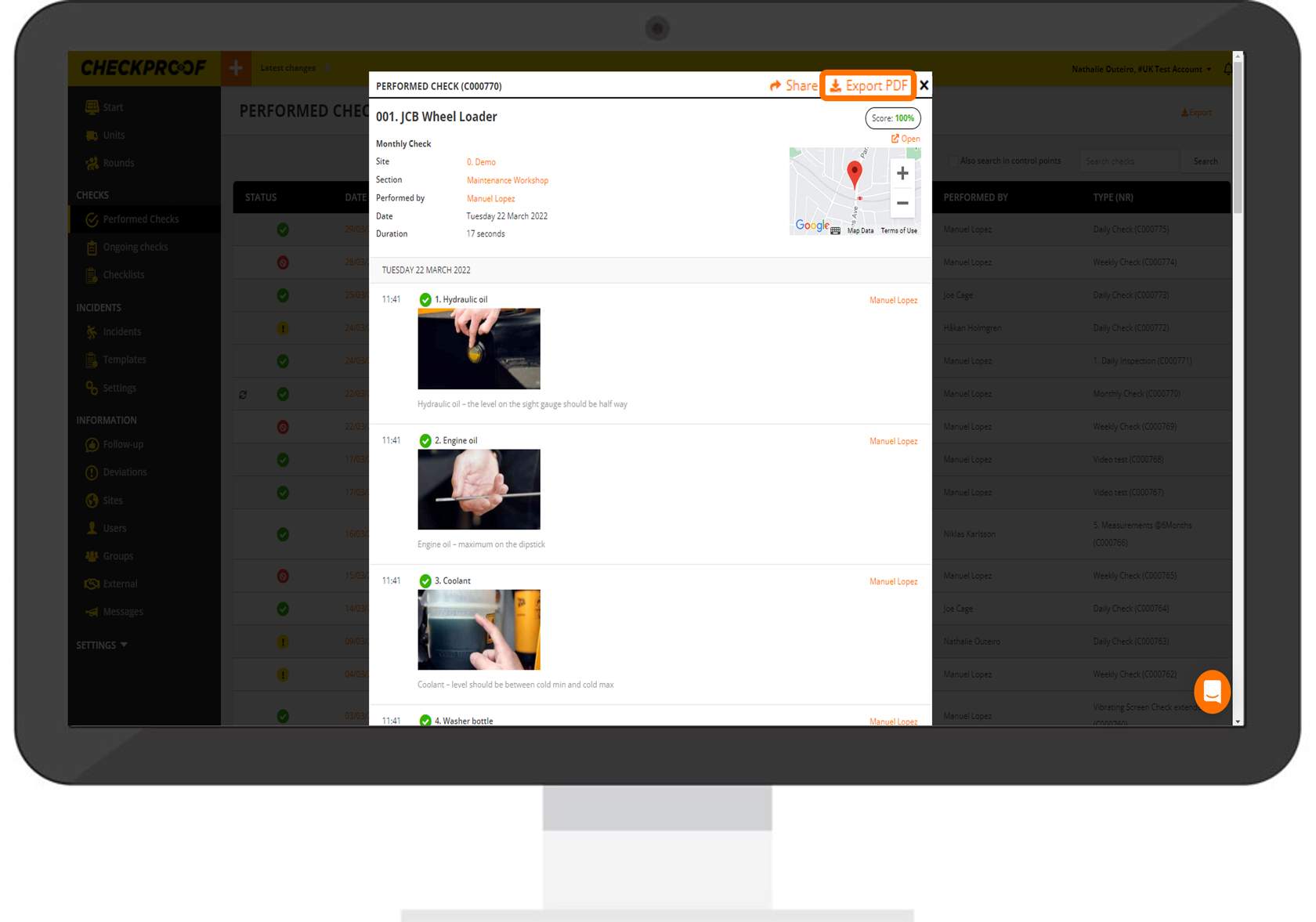 In this lesson, you will learn how to export and share performed checks.