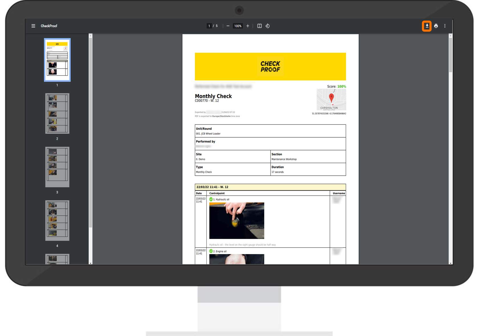 Now click on the “Export PDF” button at the top of the page to generate a PDF of the performed check.