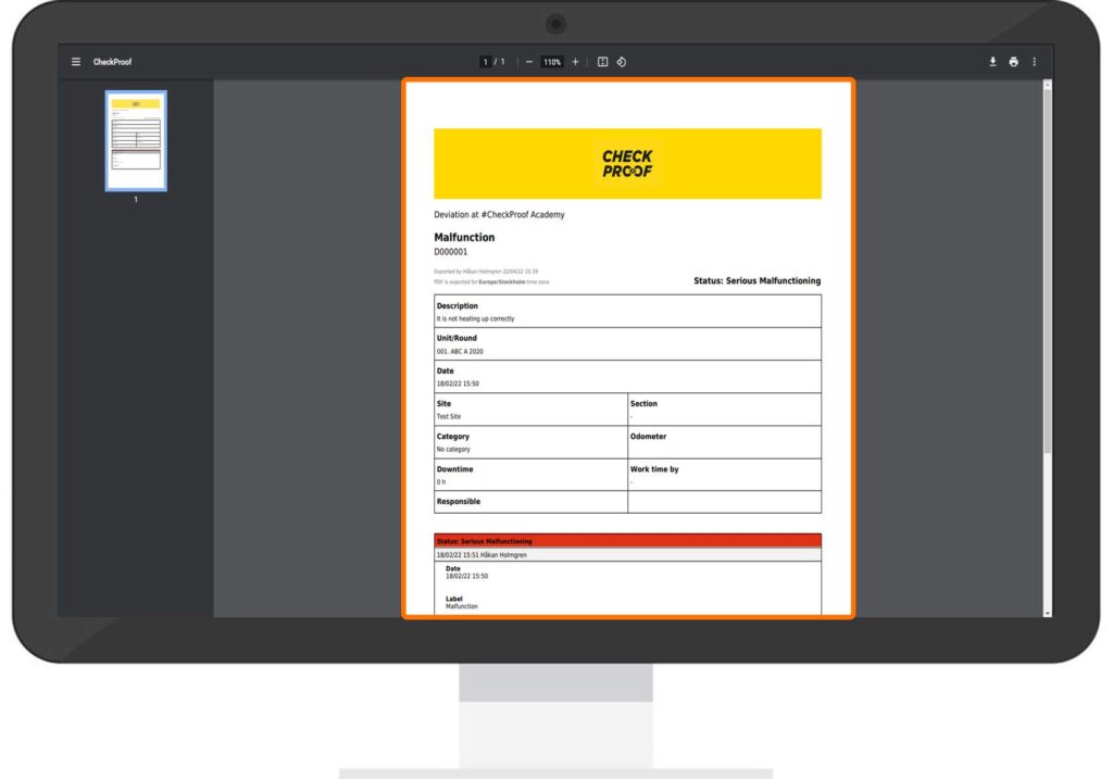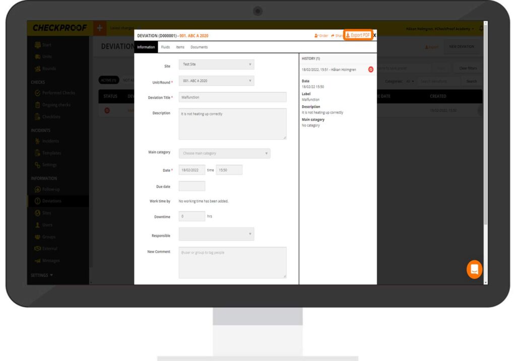Here you will see the information related to this deviation. Click the “Export PDF” button in the upper-right corner.