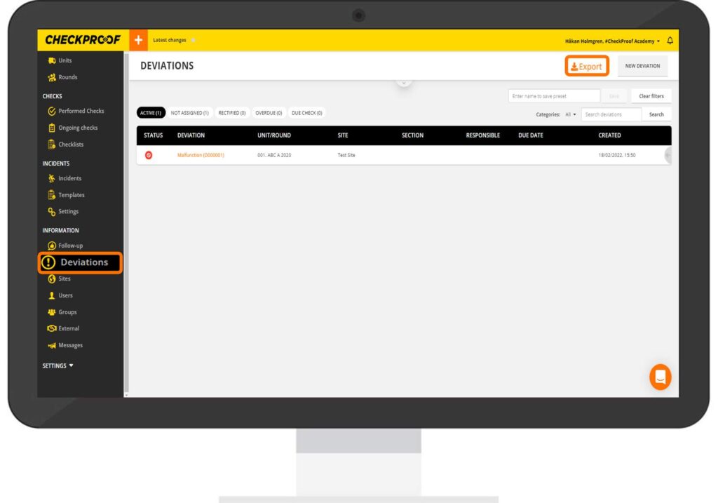 Great! Now you know how to export a specific deviation from the CheckProof Admin Panel.