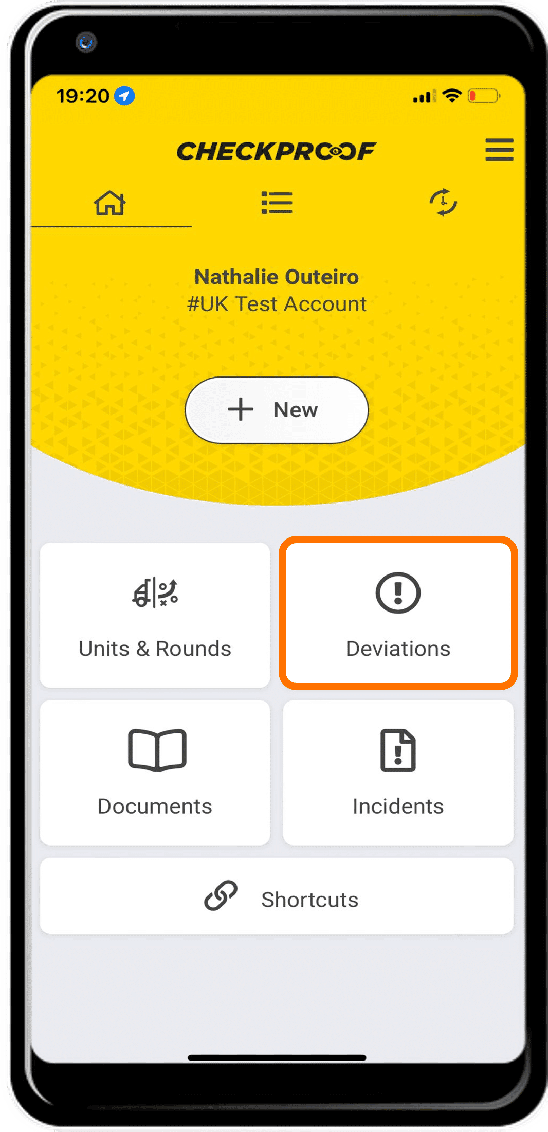 1. You can view and update a deviation by clicking the “Deviations” button on the homepage.