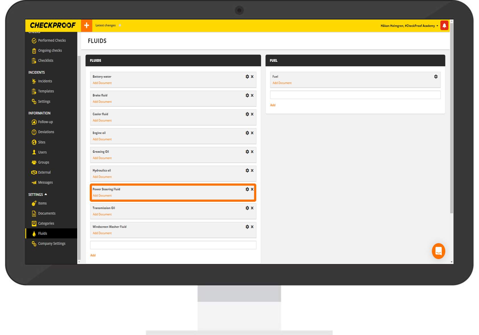 The new fluid will now be added to the list and can now be used when performing a refill task in the CheckProof app. By default, fluids are organized in ascending alphabetical order.