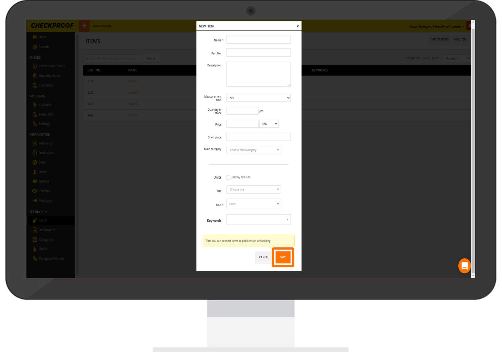 Here you need to manually enter the item data. The fields with an asterisk (“Name” and “Unit”) are mandatory.