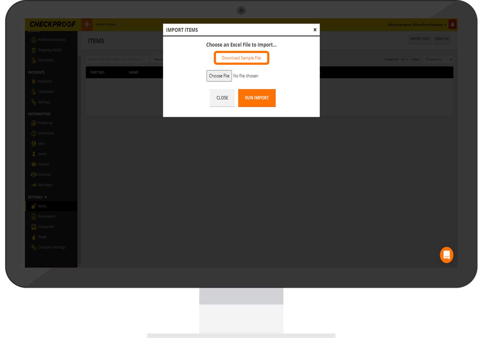 Navigate back to CheckProof once you have saved your Excel spreadsheet. Click the “Choose File” button, select the file from your device, and then click the “Run Import” button.