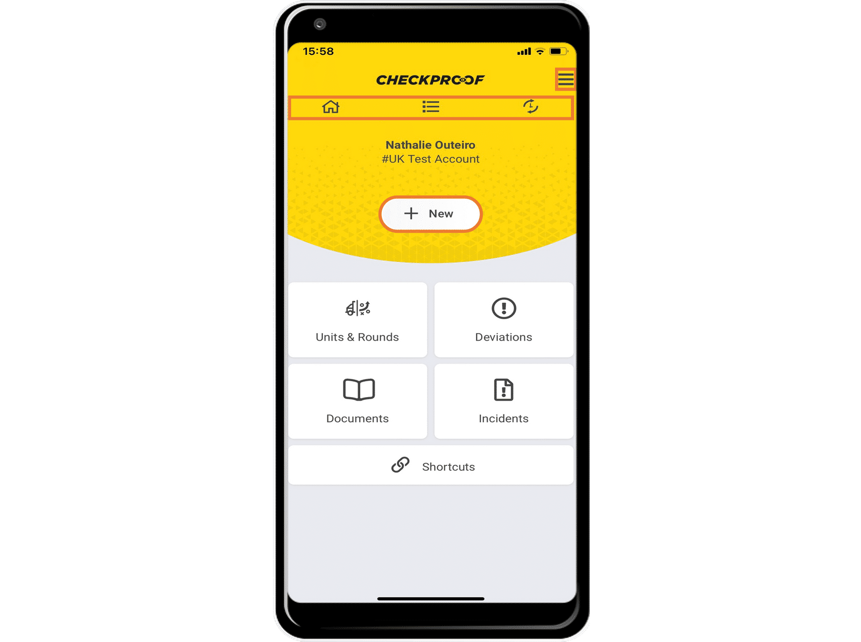 When you first open the CheckProof app, you will see the main menu. From there you can navigate through the different menus in the app to manage your checks, deviations, documents, etc.