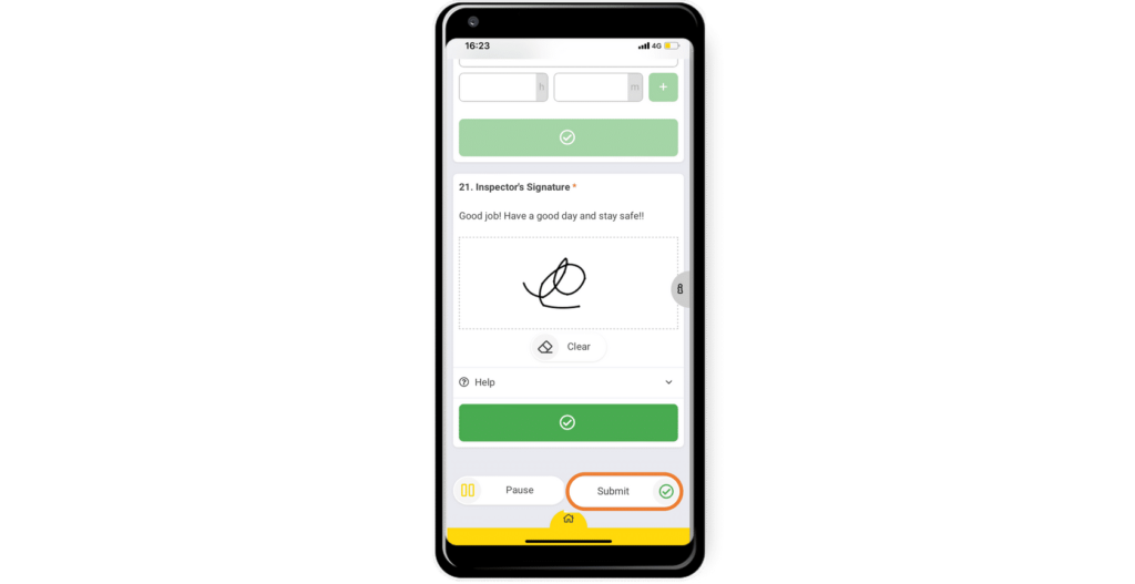 After you have filled in all the information and added photos, press “Submit” to save the deviation to your check.