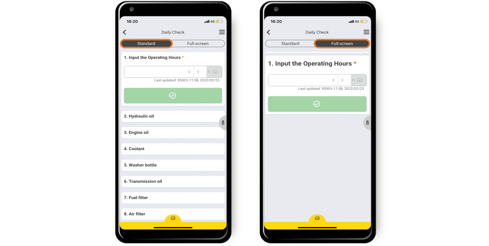 “Standard” shows you all the control points you have to perform on the open screen all at once. You only need to scroll down to see the next control points.