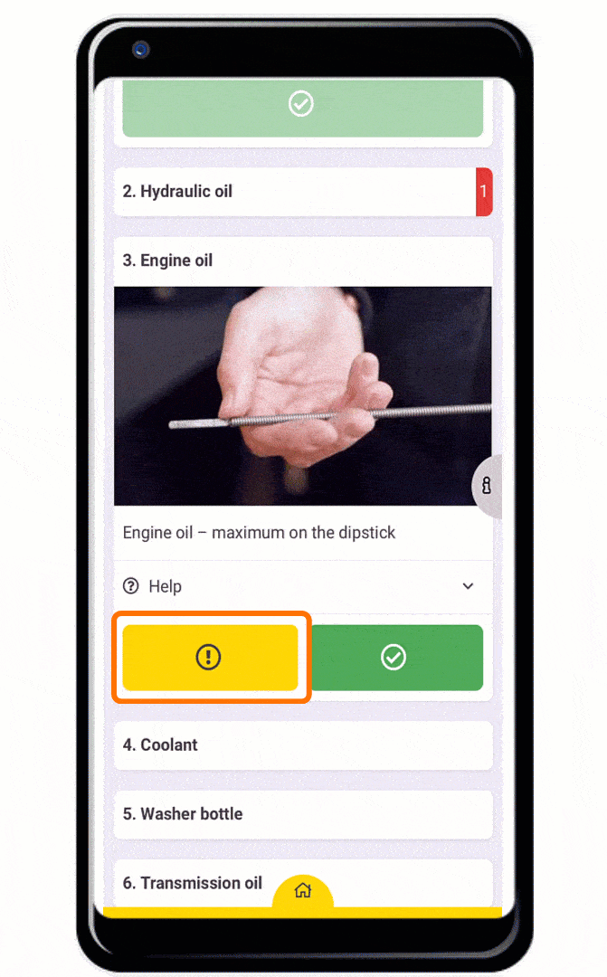 • If there is a deviation and you need to report a problem, press the yellow button.