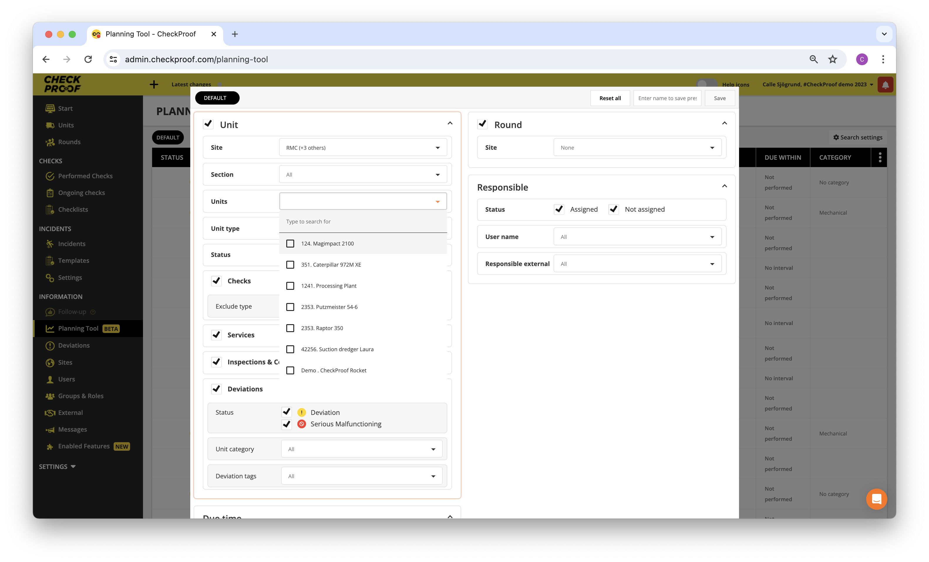 In the list view, you will be able to see all the due dates on the upcoming checks, but also for how long a deviation has been overdue.