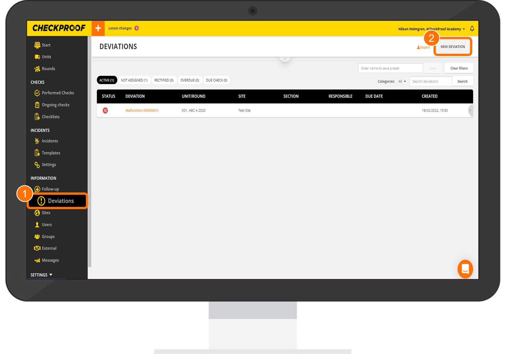 • Status: Here you can select the status of the deviation. You can choose from “Serious Malfunctioning”“Deviation”, or “Rectified”.
