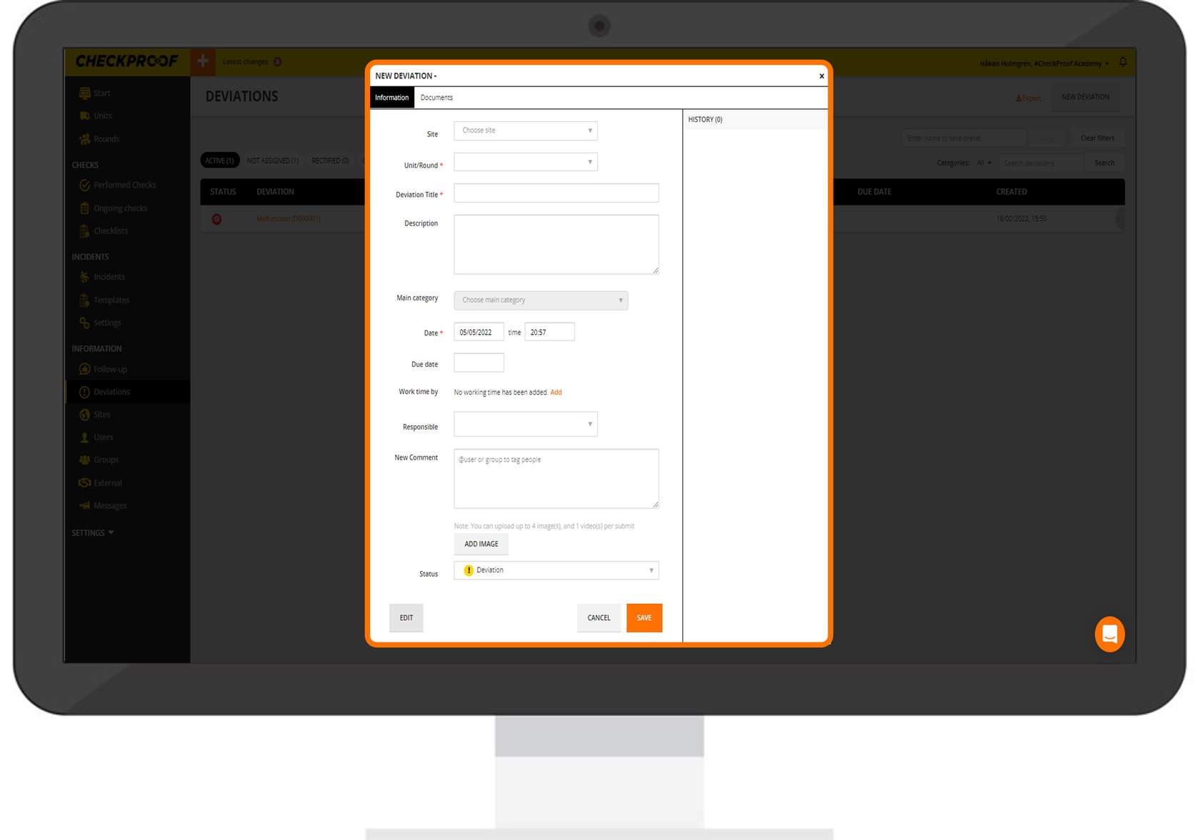 • Unit/Round: Here you must select a unit or round to connect this deviation to.