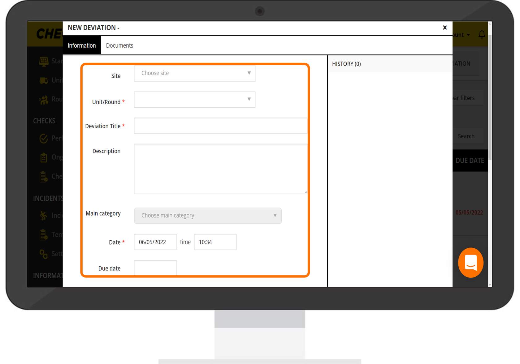 Now you will see a form to complete with information regarding the deviation. The fields marked with an asterisk are necessary. Follow the process below to learn how to complete this form.