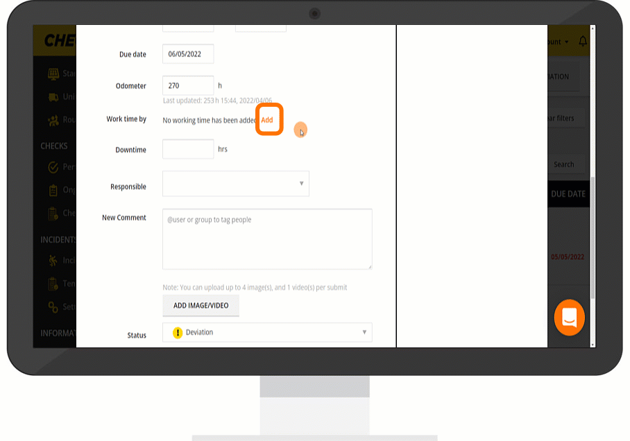 If you want to add work time you can click on “Add” and fill in when and what has been done to rectify the deviation.