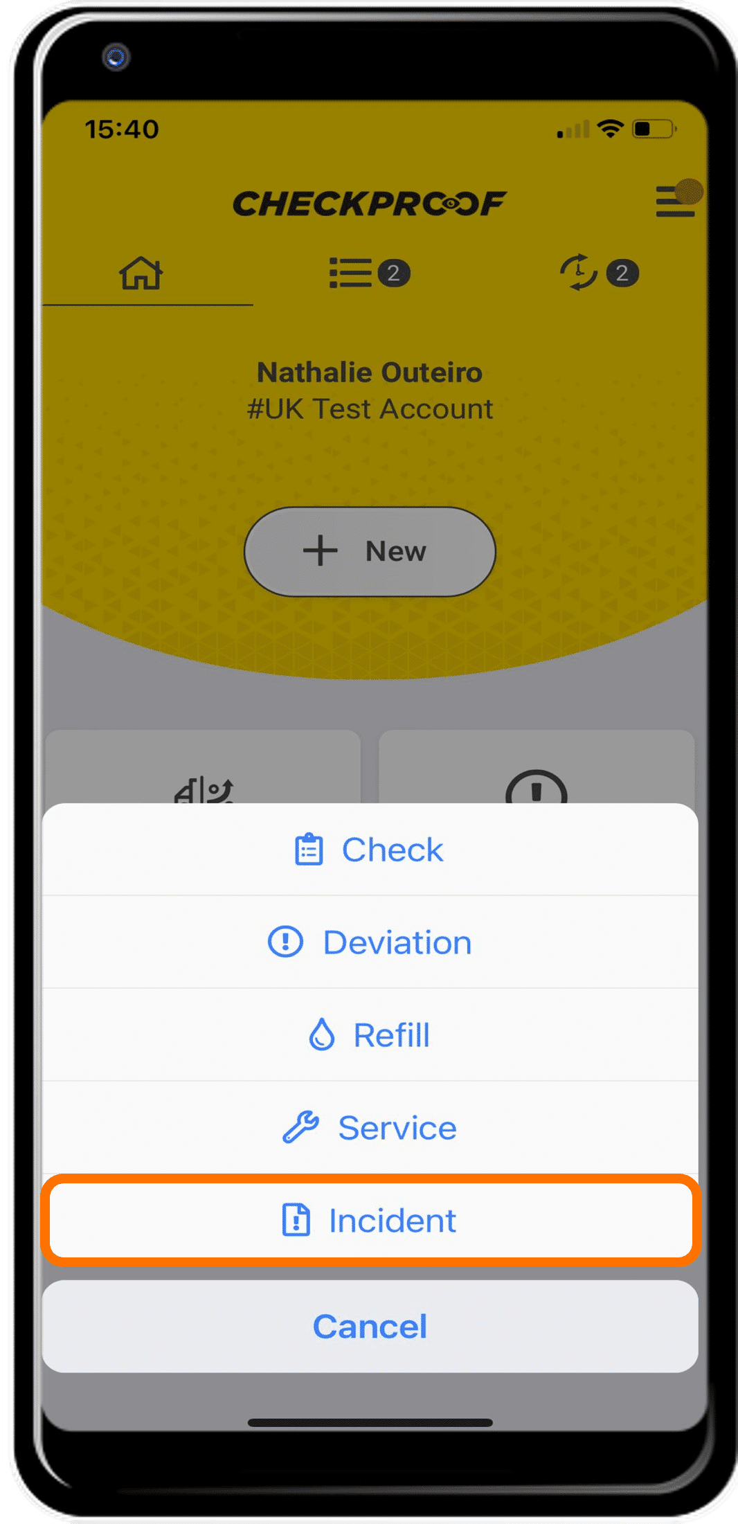 If something goes wrong on site you may need to report the incident. You can do this in the CheckProof app.