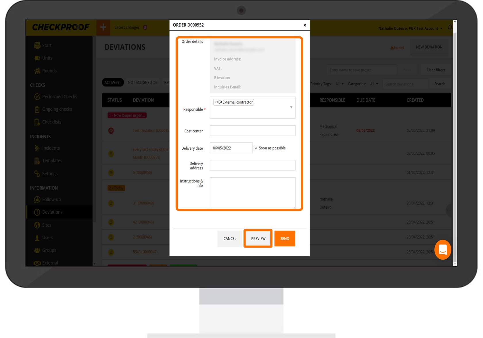 You know how to assign a deviation to an external partner. Now it is time to send the order to them through the CheckProof admin panel.