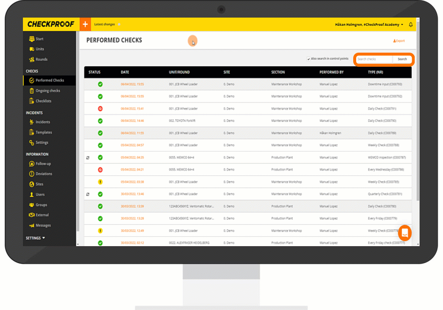 You can now use the search bar to search for a specific performed check.