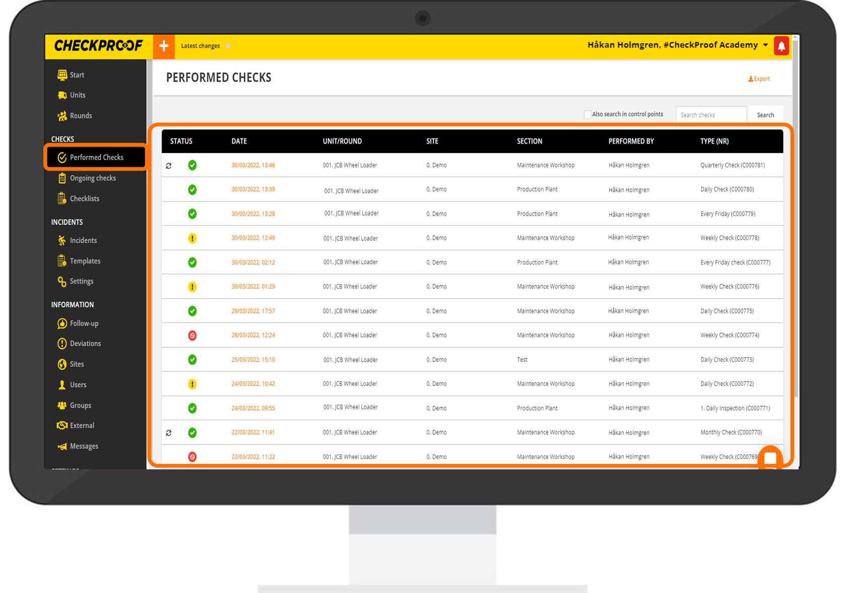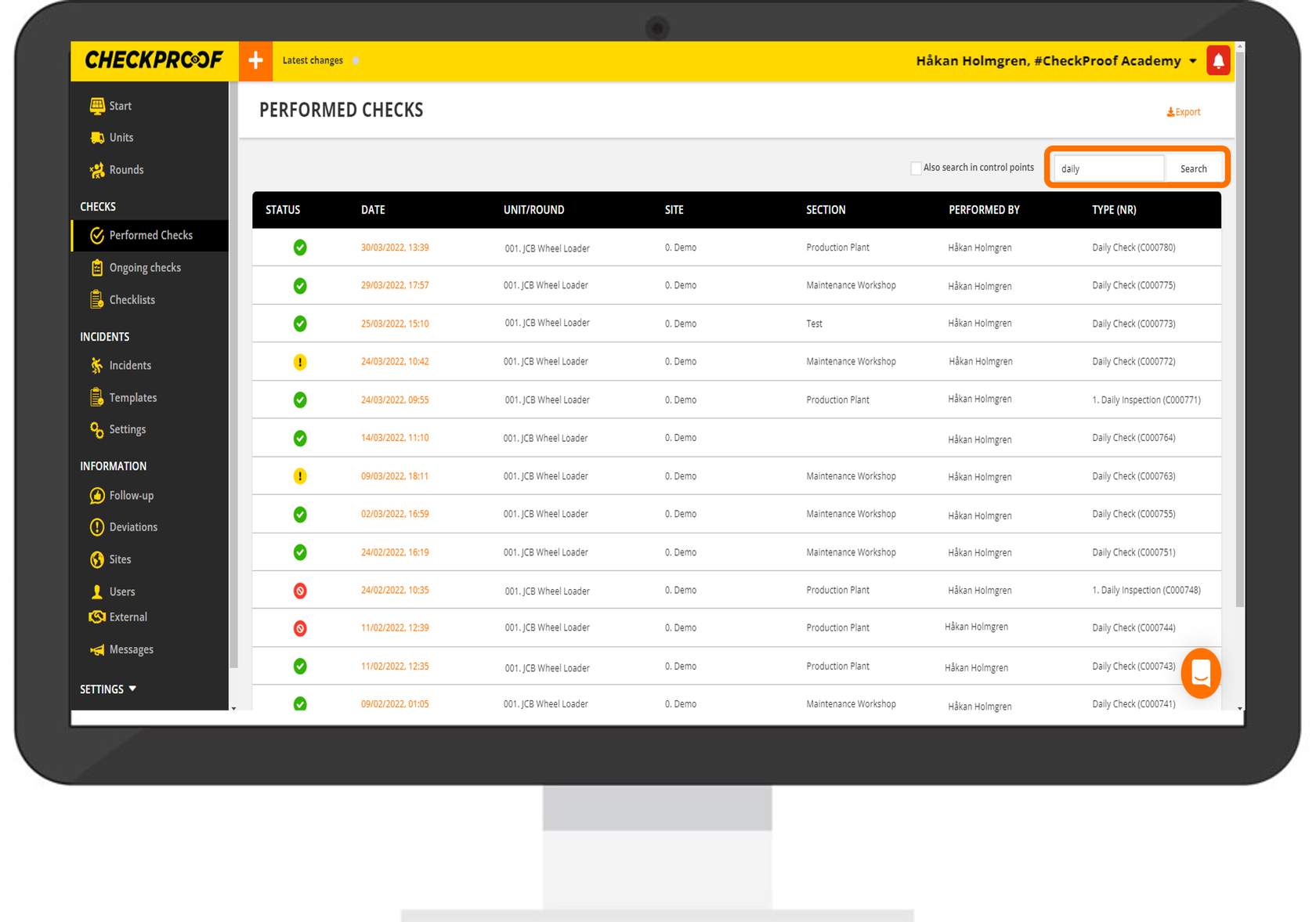 You can now use the search bar to search for a specific performed check.